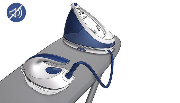 أثناء عملية تنظيف الكلس، ستخرج المياه الساخنة والبخار من قاعدة المكواة وستسمعي إشارات صوتية قصيرة. * استخدمي حاوية تنظيف الكلس لجمع المياه الوسخة. ** من الآمن جدًا وضع المكواة على هذه الحاوية أثناء العملية بأكملها.